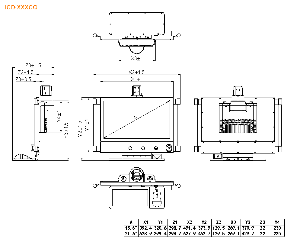 注:[1]:產品默認包含顯示器、懸臂安裝組件、60W適配器套件、1.5米2P 5.08鳳凰端子直流供電線,不包含把手、按鍵、鍵盤托等配件.